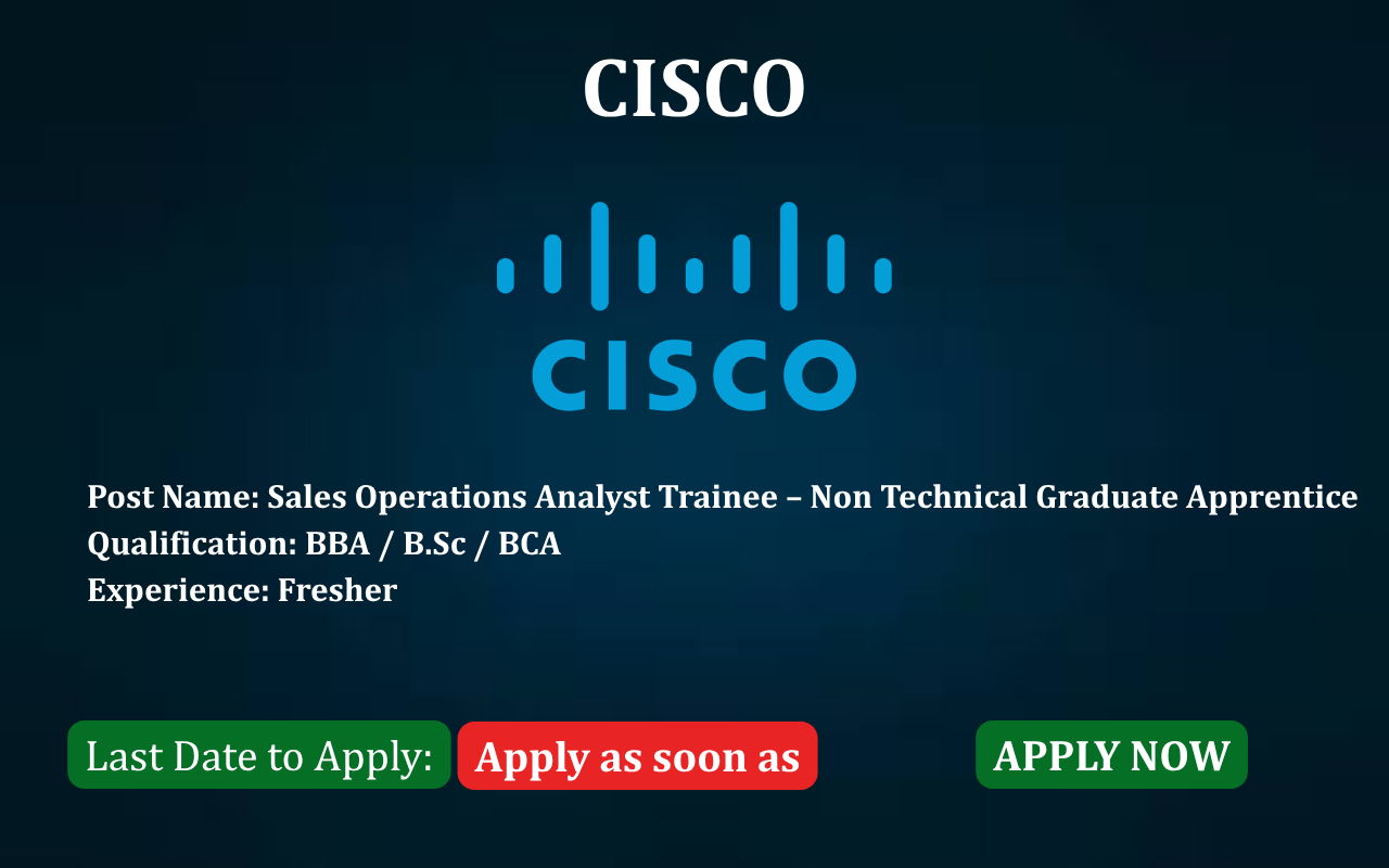 Cisco hiring Sales Operations Analyst Trainee – Non Technical Graduate Apprentice