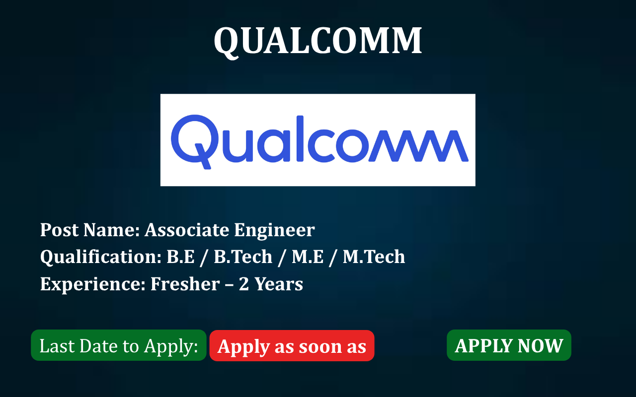 Introduction Qualcomm is hiring fresh graduates for the role of Associate Engineer in Bangalore and Chennai. This is an excellent opportunity for candidates with a background in engineering to work on next-generation technologies like 5G and embedded systems. If you are passionate about innovation, wireless communication, and software development, this role offers a strong platform … Read more