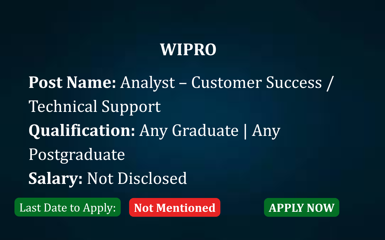 #WiproJobs #WiproAnalyst #TechnicalSupportJobs #CustomerSuccessJobs #BangaloreJobs #ITServicesJobs #FinanceSupportJobs #InstitutionalFinance #ServiceDeskJobs #ITILJobs #SLAJobs #SupportAnalyst #CareerOpportunity #ApplyNow