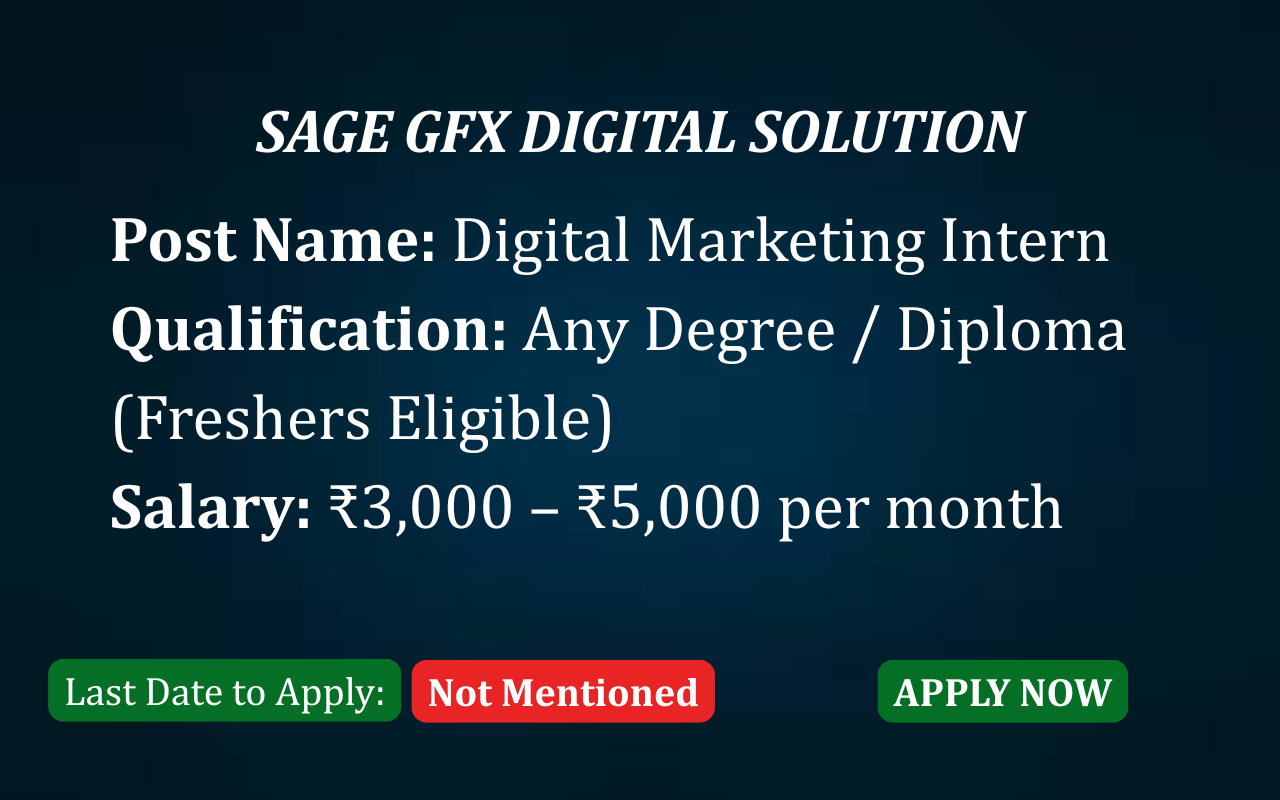 Sage GFX Digital Solution is a growing digital services company based in Tambaram West, Chennai, offering opportunities for young talents to start their career in Digital Marketing with hands-on learning and real-time exposure.