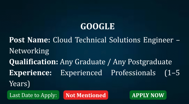 Google Cloud is hiring Cloud Technical Solutions Engineers – Networking to support customers globally by troubleshooting complex cloud, networking, and system-level issues. This role blends cloud infrastructure, networking expertise, and coding skills to improve customer experience and product adoption.