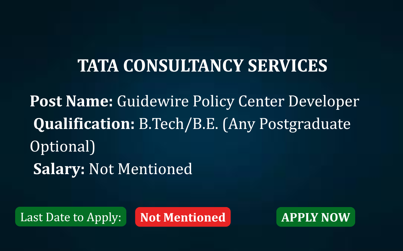 GUIDEWIRE POLICY CENTER DEVELOPER 2026 Introduction TCS is looking for skilled Guidewire Policy Center Developers to work on Claim Center, Contact Manager UI, Rules, and Integration components. Ideal for B.Tech/B.E. graduates with experience in Guidewire 8.0+ and strong communication skills. About the Company Tata Consultancy Services (TCS) is a global leader in IT services and … Read more