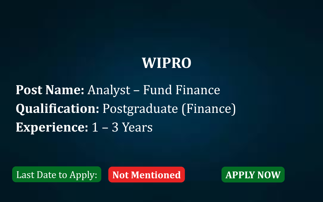 WIPRO ANALYST JOBS 2026 – BENGALURU About Wipro Wipro Limited is a global leader in technology services and consulting, operating in over 65 countries with 230,000+ employees. Wipro partners with leading global organizations to deliver innovative digital, finance, and operational solutions. Job Overview Role: Analyst – Fund FinanceDepartment: Institutional Finance (Buy Side)Experience Required: 1 – … Read more
