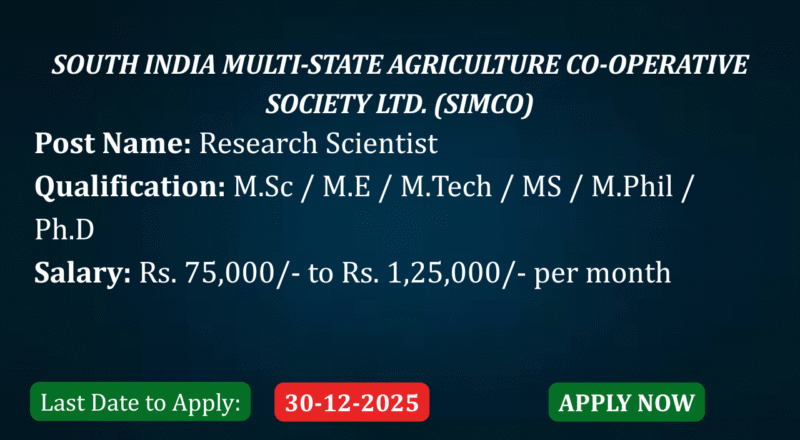 MULTIPLE POSTS RECRUITMENT – 2026 South India Multi-State Agriculture Co-operative Society Ltd. (SIMCO) INTRODUCTION South India Multi-State Agriculture Co-operative Society Ltd. (SIMCO) has announced recruitment […]