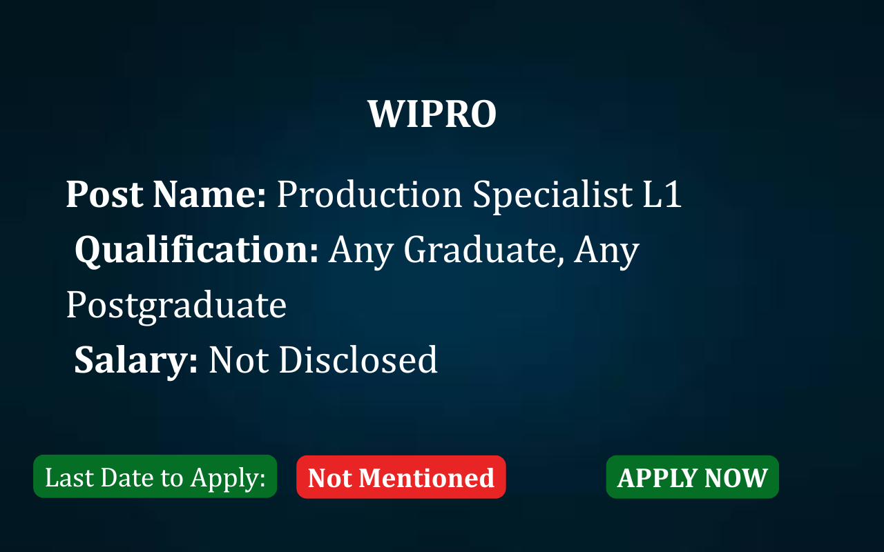 Production Specialist L1 Jobs at Wipro 2025