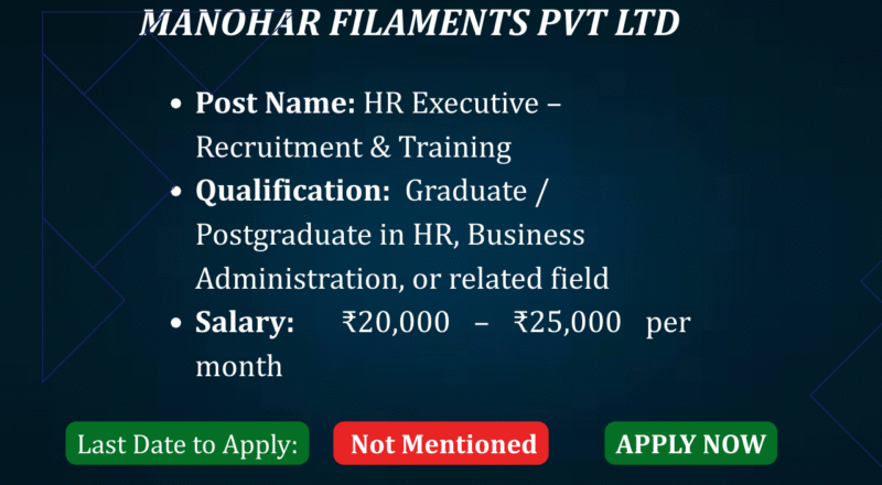 Continue readingHR Executive – Recruitment & Training Jobs in Chennai (2025) Introduction Manohar Filaments Pvt Ltd is hiring an experienced HR Executive – Recruitment & Training […]
