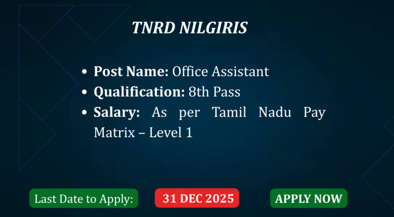Office Assistant – TNRD Nilgiris Recruitment 2025 Introduction Tamil Nadu Rural Development & Panchayat Raj (TNRD), Nilgiris has officially released the 2025 recruitment notification for […]